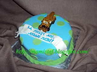 Si un tort Lazy Town foarte rapid, blat alb, insiropat cu vanilie si sirop de piersici si crema de iaurt, frisca si piersici..